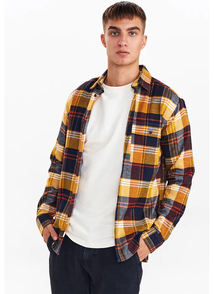 Dit warme flanellen hemd heeft een ruitjesmotief en mooie herfstkleuren.