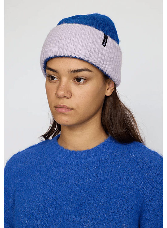 Gebreide beanie in blokkleuren met een grote contrasterende omgeslagen rand, gemaakt van een warm, zacht gerecycled polyester-wolmengsel. De beanie is voorzien van een discreet Selfhood-merklabel en de speelse kleuren van deze beanie zullen je dag opvrolijken.