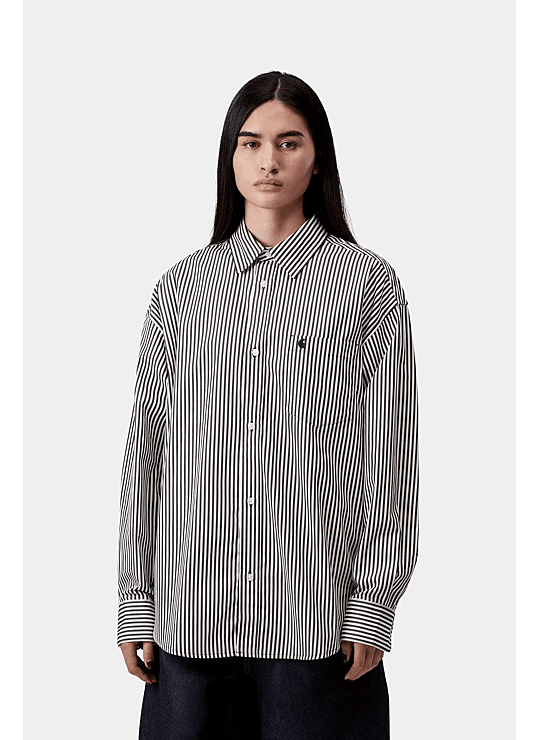 Het Women's L/S Daldry Shirt heeft een oversized pasvorm en is gemaakt van lichtgewicht, gestreept katoenen popeline. Het model heeft een borstzak met een geborduurd ‘C’-logo.
