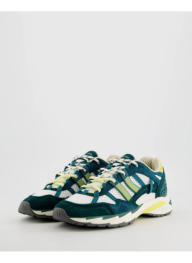 Suède sportschoen gecombineerd met suède en mesh panelen voor verbeterde ventilatie en textuur. Gestructureerde hiel met een TPU-stuk voor extra ondersteuning. Gewatteerde, voorgevormde tong voor een comfortabele en nauwkeurige pasvorm. Mat TPU-logo aan de zijkant. Tweekleurige, verwisselbare platte katoenen veters. Licht gewatteerde kraag voor extra comfort. Gestikte versteviging bij de tenen. Flexibele zool met een gelinzetstuk voor verbeterde demping, gecombineerd met rubber voor duurzame grip. Modelnaam “2003” in reliëf op de zijkant in een verouderde metallic afwerking.Vertaald met DeepL.com (gratis versie)