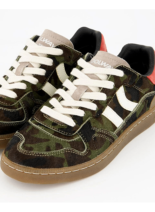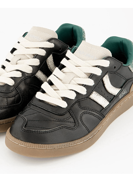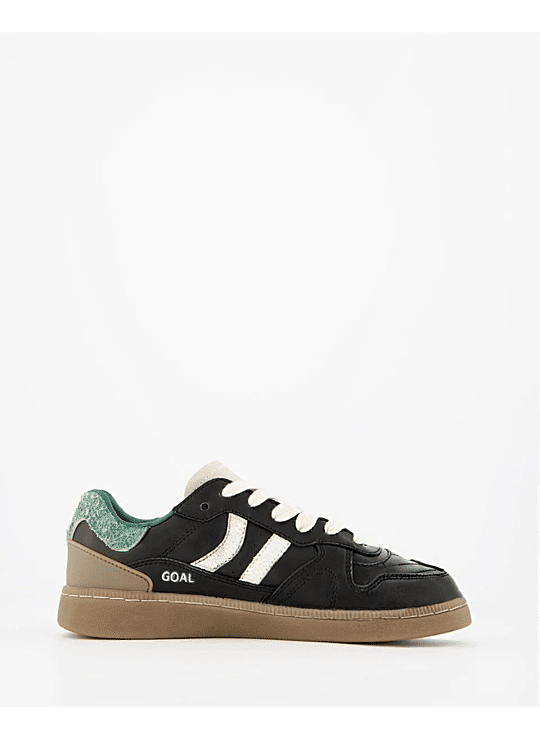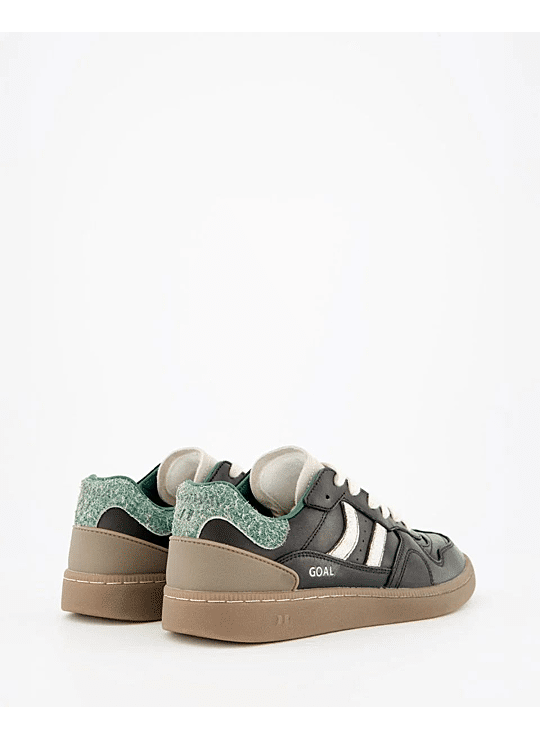 Suéde sportschoen met contrasterende kleurdetails. Leer en voorgevormde tong met geprofileerde padding. Zicht op de leren voering. Verwisselbare tweekleurige platte katoenen veters. Licht gewatteerde kraag. De voorkant heeft een stiknaadversterking. Flexibele rubber/rubberen zool voor duurzaamheid en grip. De modelnaam "GOAL" staat in oudgoud op de zijkant.