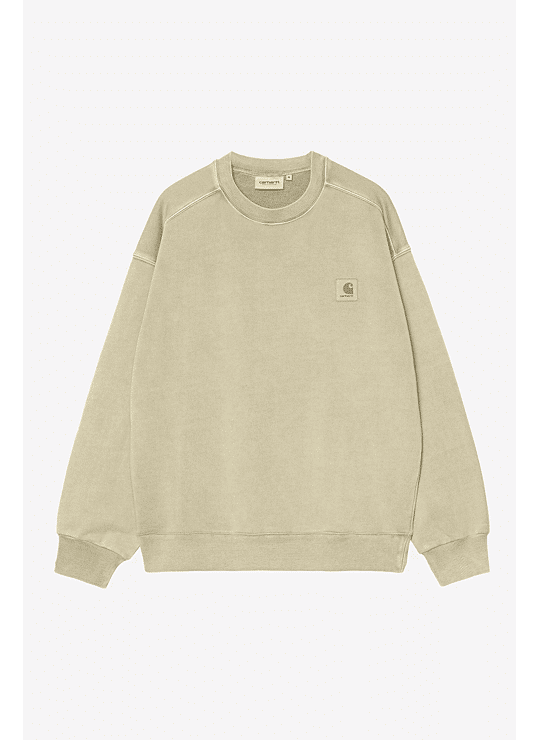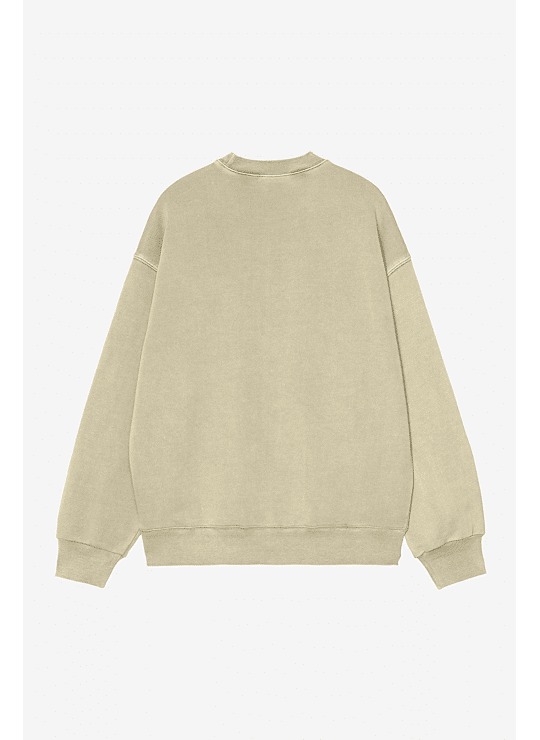 Het Nelson Sweatshirt is gemaakt van zware, ongeborstelde katoenen jersey. Het kledingstuk is met pigment geverfd voor een meer verzadigde kleur. Het heeft een opvallende 'ballon'-pasvorm, die iets losser en boxier is, maar ook wordt gekenmerkt door verlaagde schouders en geribde manchetten. Afgewerkt met een klassiek geweven label op de linkerborst.