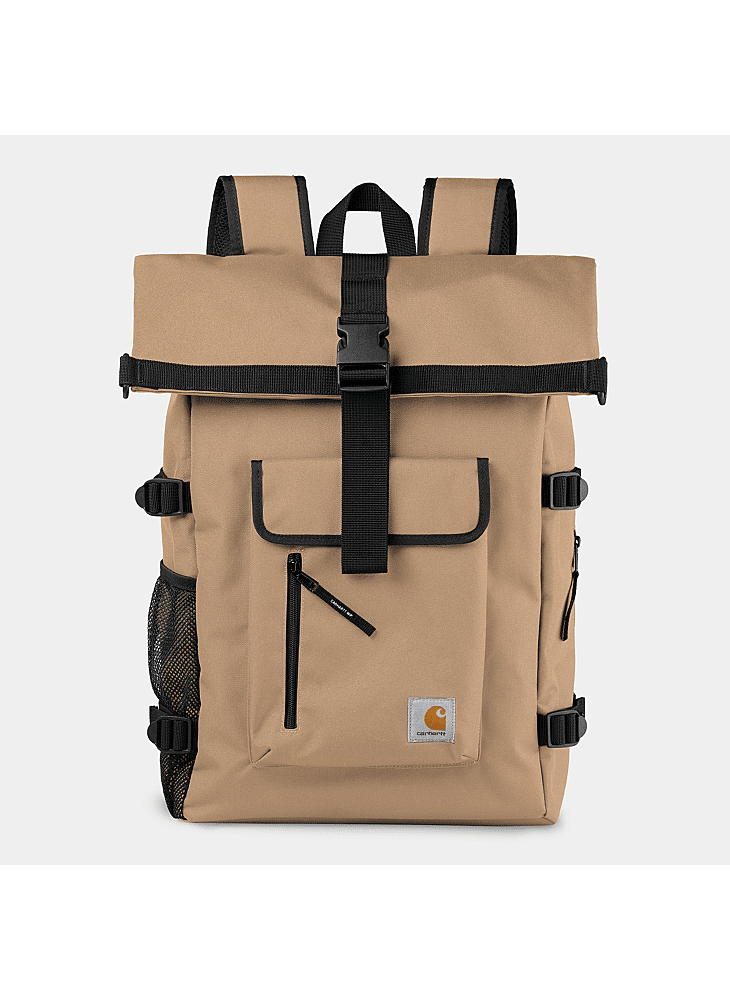 De Philis backpack is een uitbreidbare stijl, gemaakt van waterafstotend, gerecycled polyester canvas. Het heeft een ongevoerd hoofdvak met een rits- en klepsluiting, een gevoerd binnenvak en verstelbare schouderbanden.