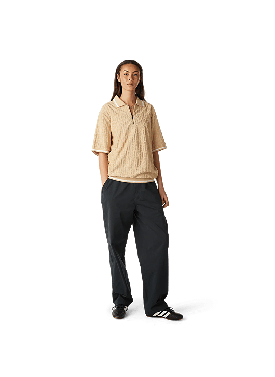 • 2x1 ribgebreid bij kraag, manchetten en zoom