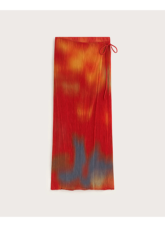 Rode, lange plooirok met bloemenprint, gemaakt van gerecycled polyester